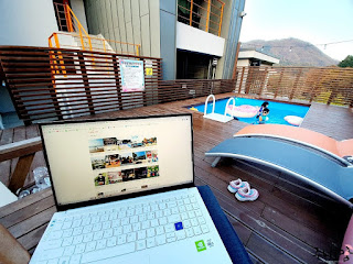 아이들이 노는 모습을 보면서 가져온 노트북으로 일도 했어요