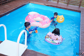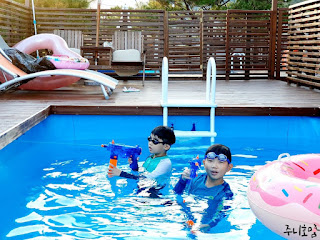 가져온 물총과 물안경을 쓰고 하루가 평펜션에서 펑을 빼고 물놀이를 했어요. 추워진 날씨가 얄밉지만 1시간정도 짧고 굵게 즐겼습니다.