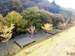 울긋불긋 단풍으로 물든 펜션의 경치가 정말 인상적이었어요.