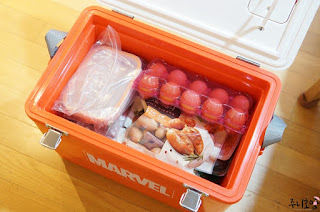냉장고도 넓고 에어컨 박스에 넣어 둔 음식을 채워 넣었기 때문에 열 때마다 든든합니다.2박3일 여행이라 가져온게 많네요.