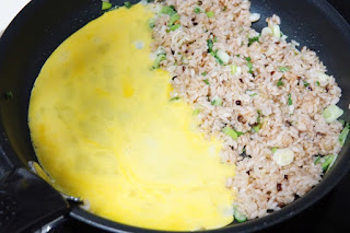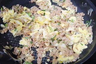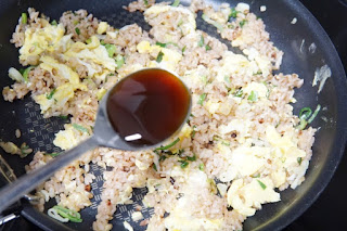 재료는 계란2알 식은밥 23공기정도 굴소스 0.8큰술 대파 미림1큰술 참기름 조금씩