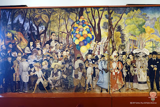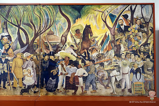 스크롤을 하시면 모든 작품을 보실 수 있습니다.디에고 리베라 미술관에서 가장 유명한 작품을 꼽는다면 그것은 아라메다 공원의 일요일 오후라는 제목의 거대 벽화였다. 몇 년 전 한국의 예술의 전당에서도 전시된 적이 있지만 여기에 걸려 있는 작품이 진품인지 복사본인지는 잘 모르겠다. ^^;;; 아무튼 그 크기가 엄청났고 색감도 강렬했어.멕시코 상류층의 허세를 비판하는 이 그림 속에는 프리다 카를로도 등장했고(해골 여성의 오른쪽), 디에고 리베라 자신도 등장했다(프리다 카를로 옆, 디에고 리베라의 어린 시절 모습이란다). 가장 유명한 것은 역시 카트리나라는 이름의 해골 여성. 머리가 텅 빈 멕시코 상류층을 상징하는 이 해골 여성은 훗날 멕시코 전통 행사의 하나인 죽은 자들의 날을 대표하는 아이콘이 됐으니 디에고 리베라의 영향력을 짐작할 수 있다. 그러나 프리다 칼로의 삶을 생각하면 디에고 리베라는 좋은 동지였는지 몰라도 화려한 여성 편력을 자랑하는 희대의 바람둥이로 프리다 카를 평생 괴롭혔으니 같은 여자라 할지라도 나도 디에고 리베라는 별로 좋다고 생각하지 않는다. ;;;