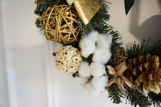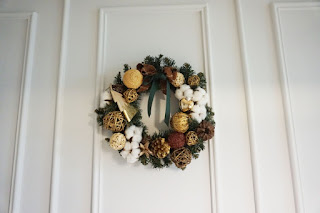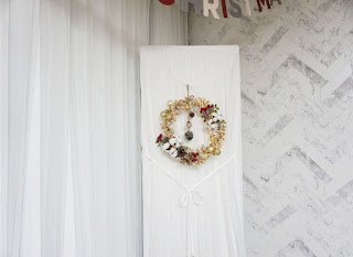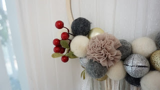 원형 링에 양모공과 오너먼트를 붙여 로맨틱한 리스를 만들어 걸기도 했습니다.