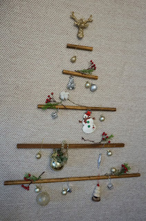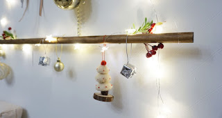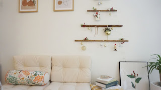지난 크리스마스 장식을 재활용하여 동선을 방해하지 않는 벽 트리 행깅 트리를 만들었습니다.