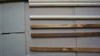 색이 너무 하얀 것 같아서 월넛과 티크를 섞어서 스테인을 발랐어요.