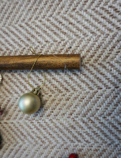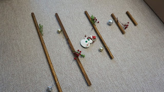 작년에 쓰던 트리 장식과 나무 막대, 끈만 있으면 돼요.