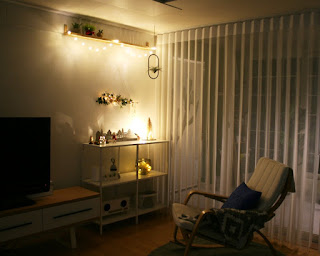 좁은 거실에 위치한 나무 모양의 트리를 세우는 것보다는 주로 벽이나 선반을 이용해 크리스마스 코너를 꾸미는 편이에요.