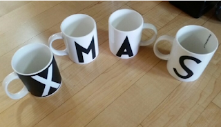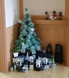 블로그를 시작한 해에는 오래된 녹색 트리에 흰색 페인트를 칠하고 홍보용 머그컵에 시트지로 글씨를 붙여 선물박스로 가득 찬 코너를 만들었습니다.