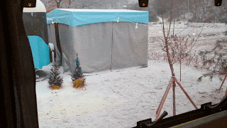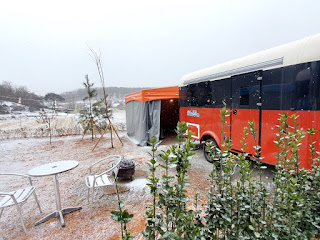 눈이 하늘하늘 내리는 당진캠핑장 러빙유 캐러밴의 낮 풍경입니다~ 창문이 넓어서 시원하고 답답함없이 ~ 열린 기분이에요 “