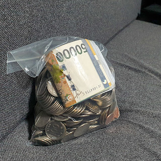 원래는 돼지저금통이 완전히 차도록 기다렸다가 먹으려고 했는데 요즘 물가가 상승해서 동전이 발생하는 일이 적어져서 그런지 여기서 계속 보합세여서 백수일 때 은행에 보내기로 했습니다.