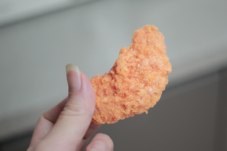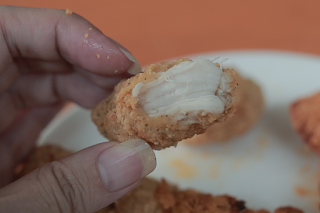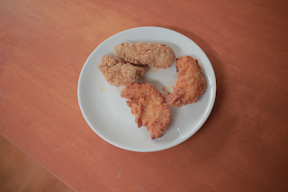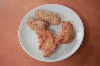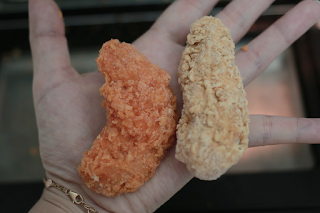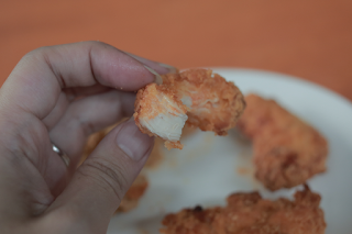 이것이 CP 프레이밍 치킨 텐더.튀김옷은 더 두껍고 튀김옷은 노랗고 후추가 많이 뿌려져 있어요.